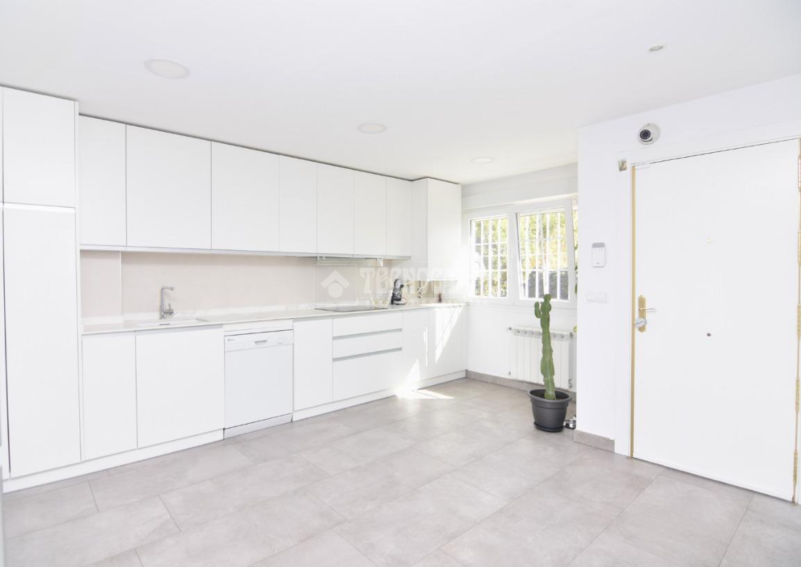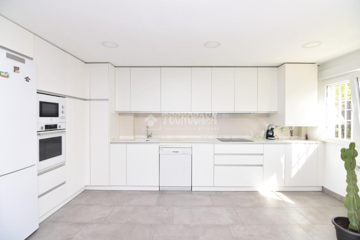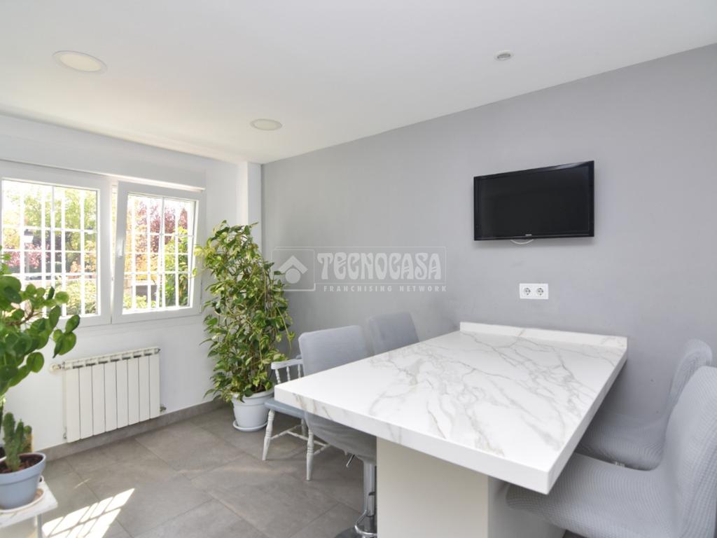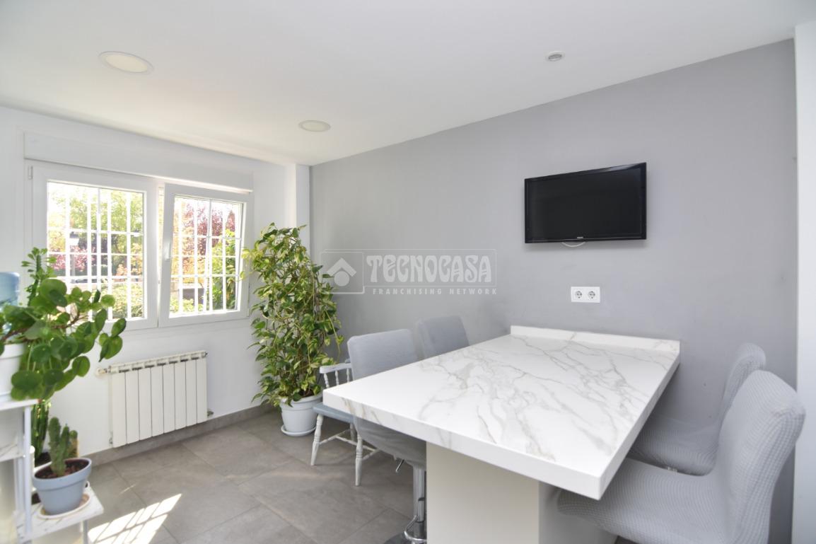 La vivienda cuenta con un hall de entrada, amplia cocina totalmente reformada con office, baño completo con plato de ducha, un luminoso salón-comedor con salida al porche y jardín privado. En la planta superior, encontrarás cuatro habitaciones dobles con armarios empotrados, dos baños completos (el dormitorio principal en suite).